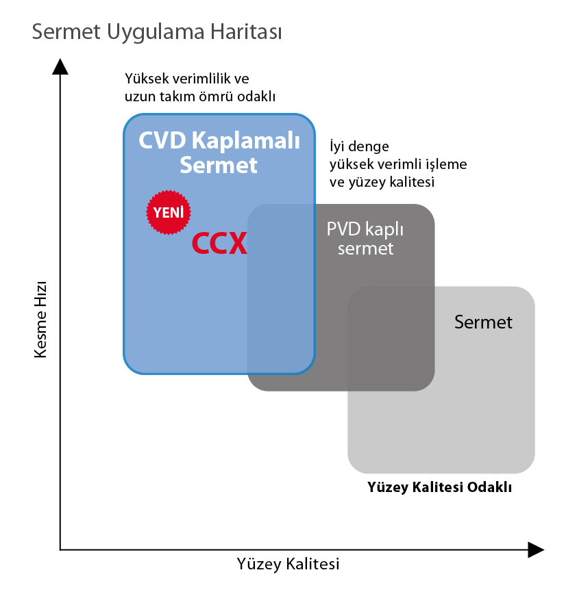 Üstün aşınma ve ufalanma direnci ile yüksek hızlı işleme ve uzun takım ömrü sağlar