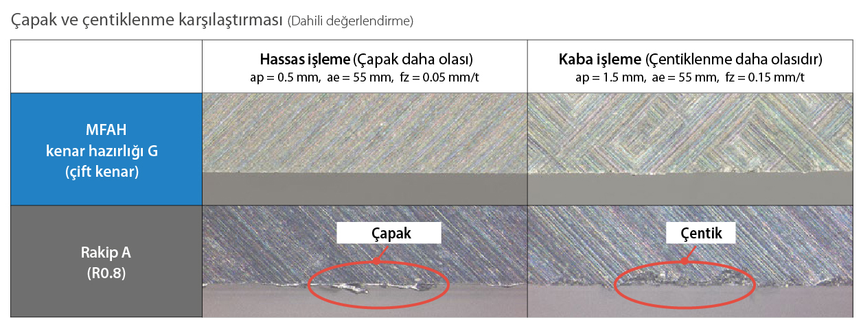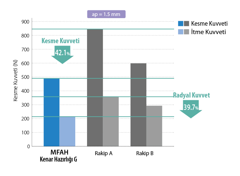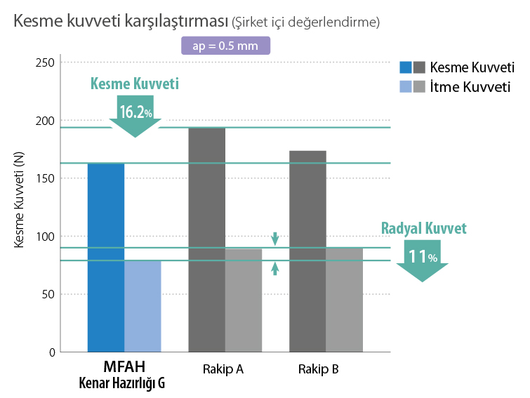 Düşük kesme kuvveti,azaltılmış tırlama ve yüksek verimli işleme sağlar.