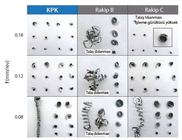 KGD Serisinden devir alınan gelişmiş talaş kırıcı teknoloijisi, mükemmel talaş kontrolü sağlar.
