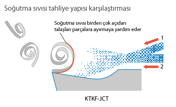 Soğutma sıvısını, kesici ucun talaş yüzeyine doğru iki yönde gönderir.Talaşları ince küçük parçalara ayırır.