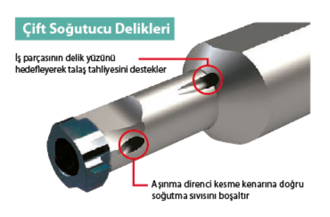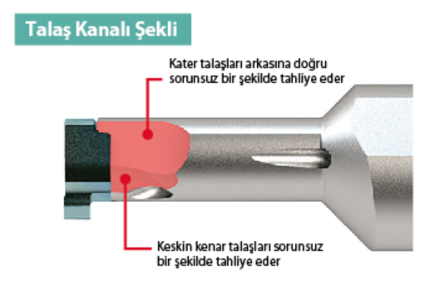 Çift soğutma sıvısı delikleri ve optimize edilmiş kanal şekli ile mükemmel talaş tahliyesi