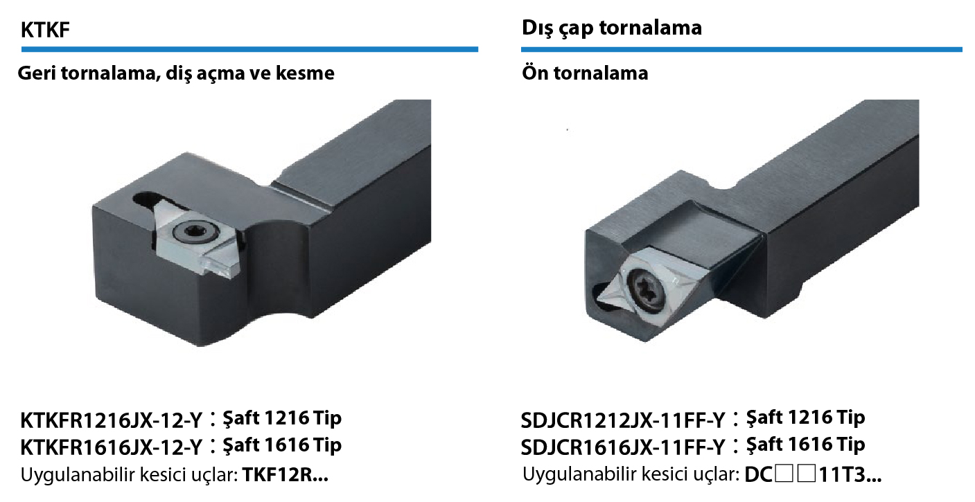 KTKF Kanal Açma ve Kesme Sistemleri, Dış Tornalama için kullanılabilir.