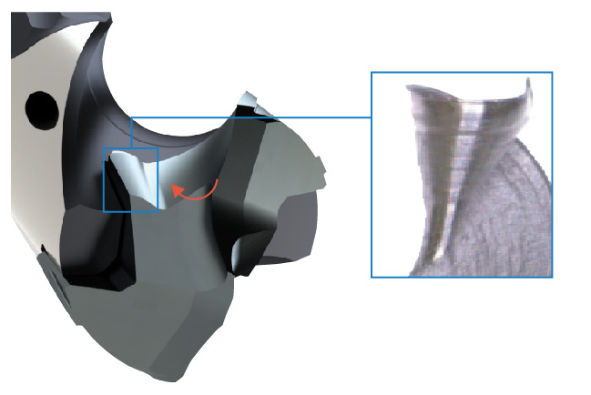 Özel iki kademeli alt kısım ,büyük talaş açısı ve çift kenar boşluğu tasarımı ,daha yüksek hassasiyetli işleme için ilk darbeyi azaltır.
