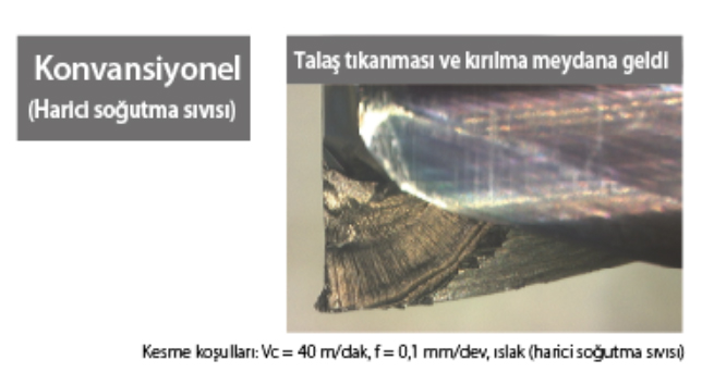 İçten soğutma ile işleme verimliliğini ikiye katlayabilir.Talaş tıkanmasını ve kırılmaları azaltır.