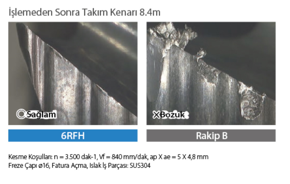 Çok kenarlı tasarıma sahip RFH, rakip B'nin aynı masa beslemesinde bile mükemmel yüzey kalitesi sağlar (Diş başına beslemeyi düşürerek)