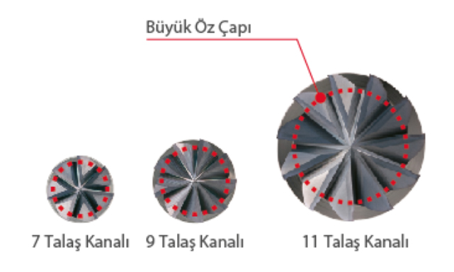 Yüksek İlerlemeli İşleme İçin Uygulanabilir ,7/9/11 Talaş Kanalı