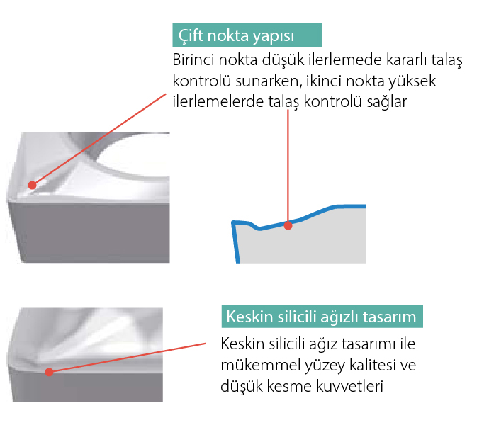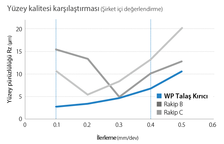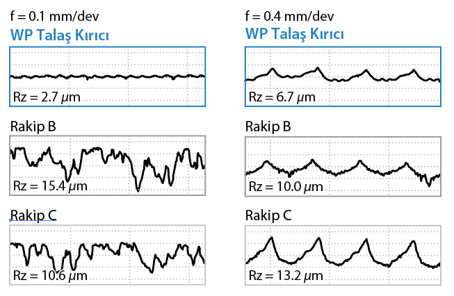 WP talaş kırıcı ,çok çeşitli kesme koşullarında mükemmel yüzey pürüzlülüğü sağlar.